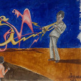 His recent paintings capture surreal moments inspired by his Tanzanian heritage, the Black experience in America, and reflections on manhood.